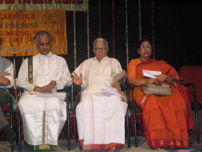 Carnatica’s Bangalore Chapter was inaugurated with a ‘BANG’. It was witnessed by music lovers who had turned up in good numbers, the fourth estate and a string of dignitaries that included Sri. Kedar (Secretary for Information, Tourism and Youth Services), Sri. Arun Madhavan (Chairman, Art of Living), Sri. Arun Kumar (President, SVN Music Academy Bangalore), Sri. Kamalanath (President, Gayana Samaj, Bangalore), Sri. R. K. Srikantan, Sri. N. Ravikiran, Prof. T. N. Krishnan, and Smt. Kamala Krishnan. Smt. Chitra Sherman (Coordinator Carnatica, Bangalore) was the hostess for the evening.